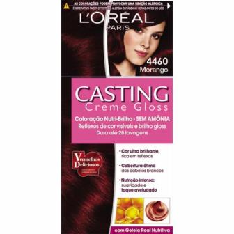 A Tintura Casting Creme Gloss é uma tintura sem amônia da L’Oréal. Dá aos cabelos uma cor incrível e brilho gloss. Por não conter amônia, ela não resseca os fios e pode ser usada em cabelos com química. O tratamento posterior com o condicionador Nutri-Brilho contém Geleia Real, que nutre os fios intensamente e repõe todos os nutrientes perdidos durante a coloração. O resultado é um cabelo colorido, com fios mais macios, sedosos e toque aveludado. Dura até 28 lavagens. O kit Casting Creme Gloss contém: 1 tubo de creme colorante sem amônia: 45g; 1 frasco aplicador do leite revelador: 67,5ml; 1 frasco de tratamento condicionador Nutri-Brilho enriquecido com Geleia Real: 40ml; 1 par de luvas; 1 folheto explicativo. Como usar Vista luvas apropriadas; Despeje o conteúdo do creme colorante no frasco aplicador do leite revelador; Feche o frasco, corte a pontinha do aplicador(¹) e cubra com um dedo. Agite bem até formar uma mistura homogênea; Deixe o frasco com a pontinha aberta(¹) descansar, enquanto separa o cabelo em pequenas mechas; Aplique a mistura na raiz(²), comprimento e pontas; Penteie suavemente com um pente de dentes largos ou massageie para distribuir melhor a tinta; Deixe agir por cerca de 20 minutos; Passados os 20 minutos, enxágue o cabelo com bastante água (não utilize shampoo); Com os cabelos ainda molhados, aplique o Condicionador Nutri-Brilho com Geleia Real; Enxágue; Deixe secar naturalmente ou com a ajuda de um secador de cabelos. ¹ Cortar a pontinha do aplicador é de extrema importância, caso contrário a mistura pode explodir o frasco; ² Em caso de clareamento, respeite uma distância de 2cm da raiz e aplique primeiramente no comprimento e pontas do cabelo, deixando agir por 20 minutos. Depois, aplique na raiz por mais 20 minutos, pois ela tende a clarear mais rápido que o cabelo. Dicas d FarmaClick Antes de utilizar o produto, faça um teste de sensibilidade: aplique uma pequena quantidade da coloração atrás da orelha, na nuca ou na parte interna do antebraço. Aguarde 48 horas e observe se houve irritação ou coceira. Um pouco de coceira é normal, pois é sinal da química agindo, mas é uma coceira suportável. Caso haja reação, um médico deverá ser consultado; Use um creme hidratante na testa, orelhas e pescoço, para evitar que a tinta manche a pele; Use roupas velhas e que podem ser manchadas; Verifique se você tem tintura o suficiente para o seu cabelo. Enquanto apenas uma caixa pode ser o suficiente para cabelos curtos e médios com poucos fios, cabelos compridos e com muitos fios podem necessitar de duas caixas ou mais; Caso o resultado não tenha sido a cor desejada, não tente corrigir em casa. Vá a um salão e consulte um profissional; Tintura não clareia tintura, isto é, se você já pintou o cabelo de alguma cor e agora quer um tom mais claro, é preciso clarear o cabelo, através da descoloração, antes de aplicar uma tintura mais clara; Não ultrapasse o tempo de 20 minutos, pois o resultado pode alterar; O resultado pode variar de acordo com a cor dos fios antes da coloração. Cores disponíveis Louros 600 Louro Escuro 610 Beijinho 613 Moca Glacê 700 Louro Natural 710 Cocadinha 713 Louro Avelã 734 Mel Dourado 800 Louro Claro 810 Louro Perola 832 Louro Mel 834 Caramelo Marrons e Chocolates 415 Chocolate Glacê 513 Trufado Glacê 535 Chocolate 634 Mel Tabaco 670 Chocolate com Pimenta 770 Doce de Leite Pretos e Castanhos 100 Preto Noite 200 Preto 210 Preto Azulado 300 Castanho Escuro 400 Castanho Natural 412 Cacau Glacê 500 Castanho Claro Vermelhos 316 Ameixa 3360 Amora 426 Borgonha 4460 Morango 550 Acaju 6664 Maçã do Amor